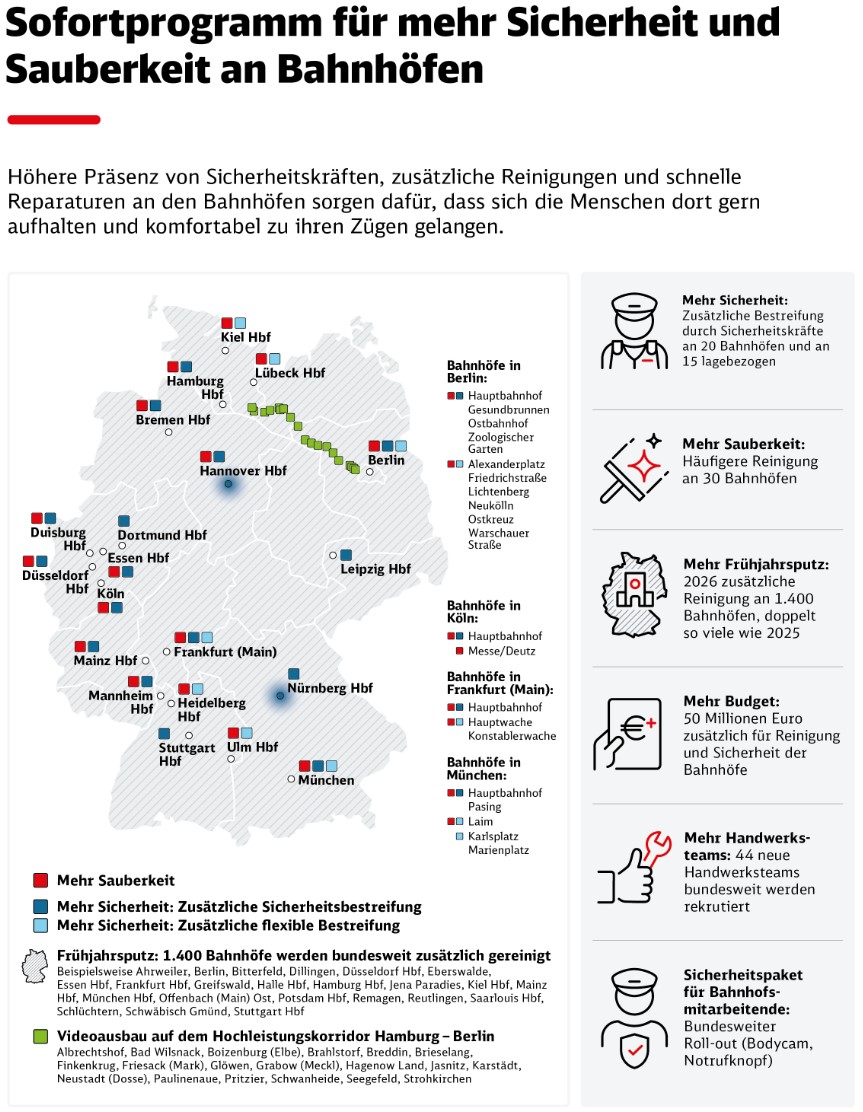 - 50 Millionen Euro zusätzlich für die Reinigung und Sicherheit der Bahnhöfe