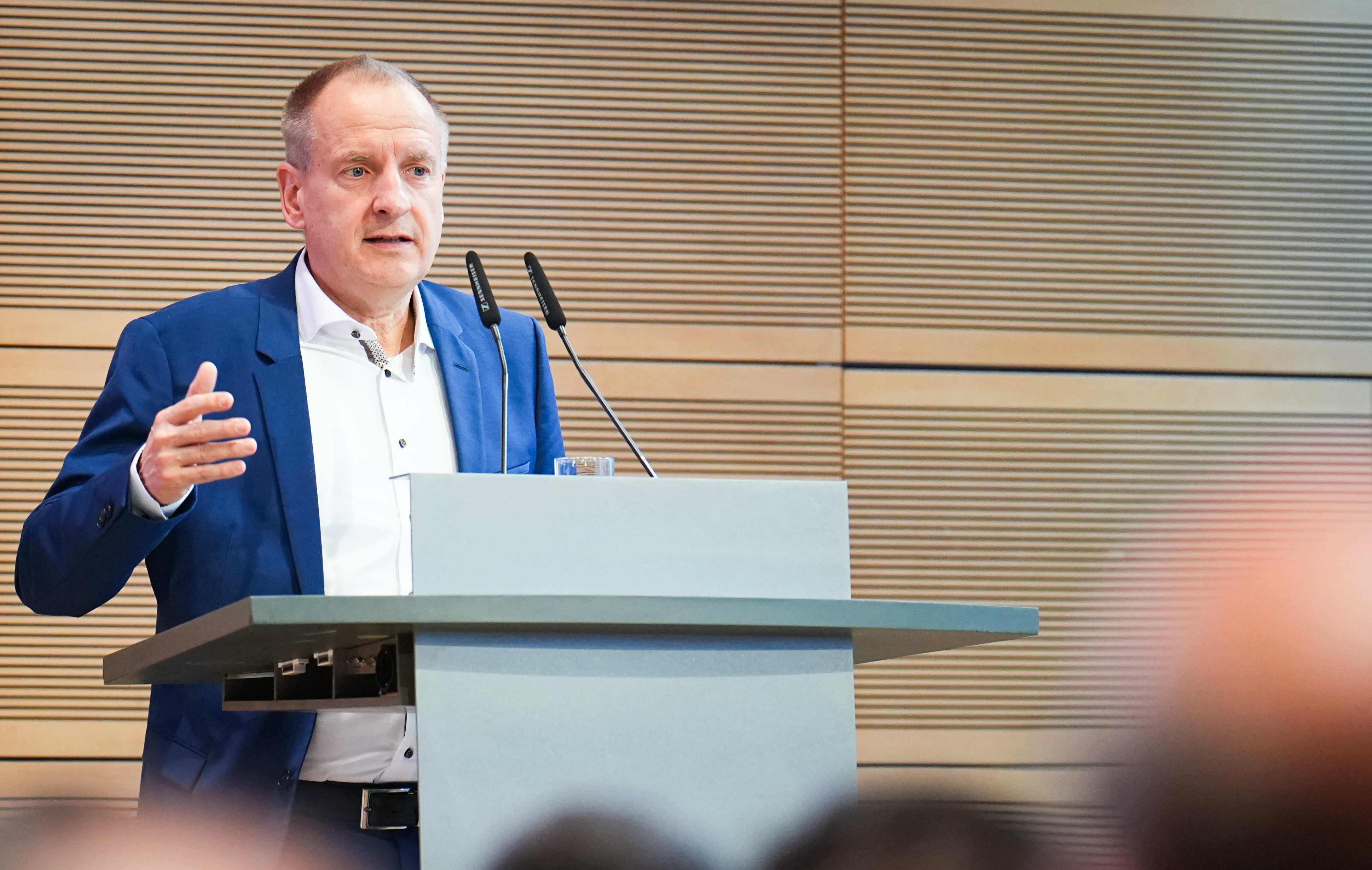 Dr. Marcus Schenkel machte die Herausforderungen der DB deutlich: Die Infrastruktur ist schneller gealtert, als sie erneuert wurde. Gleichzeitig hat der Verkehr auf der Schiene stetig zugenommen. Langfristig gehe es um einen strukturierten Abbau des Erneuerungsrückstandes. Wichtige Hebel sind partnerschaftliche Vertragsmodelle, der effiziente Umgang mit knappen Sperrzeiten sowie die Sicherstellung und der Aufbau von Personal, Material und Maschinen. Eine hohe Sensibilität im Betrieb sei unerlässlich, um die Infrastruktur auch während der Bauphasen sicher zu betreiben.