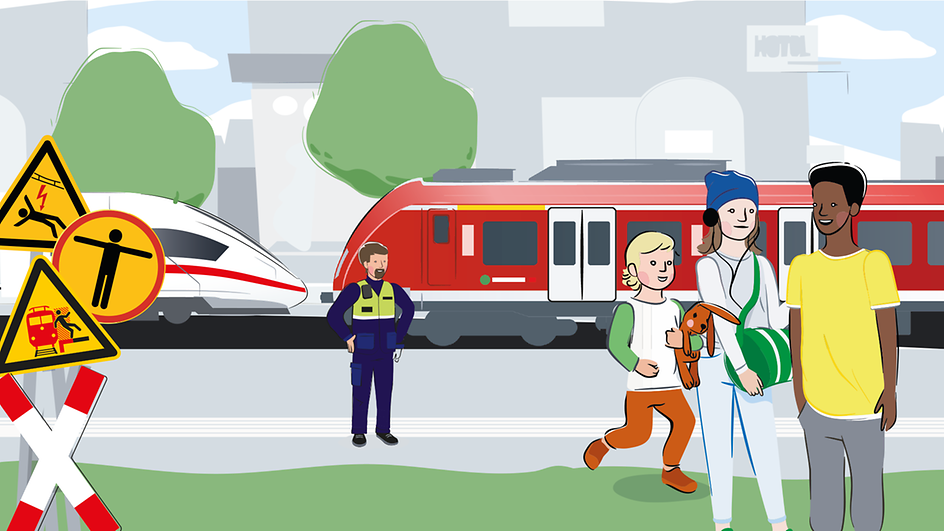 An Bahnhöfen und auf Bahnsteigen ist es oft sehr trubelig. Wo Züge ein- und ausfahren, kann unvorsichtiges oder leichtsinniges Verhalten lebensgefährlich sein oder sogar tödlich enden. Mit ein paar einfachen Regeln kommt man sicher ans Ziel.