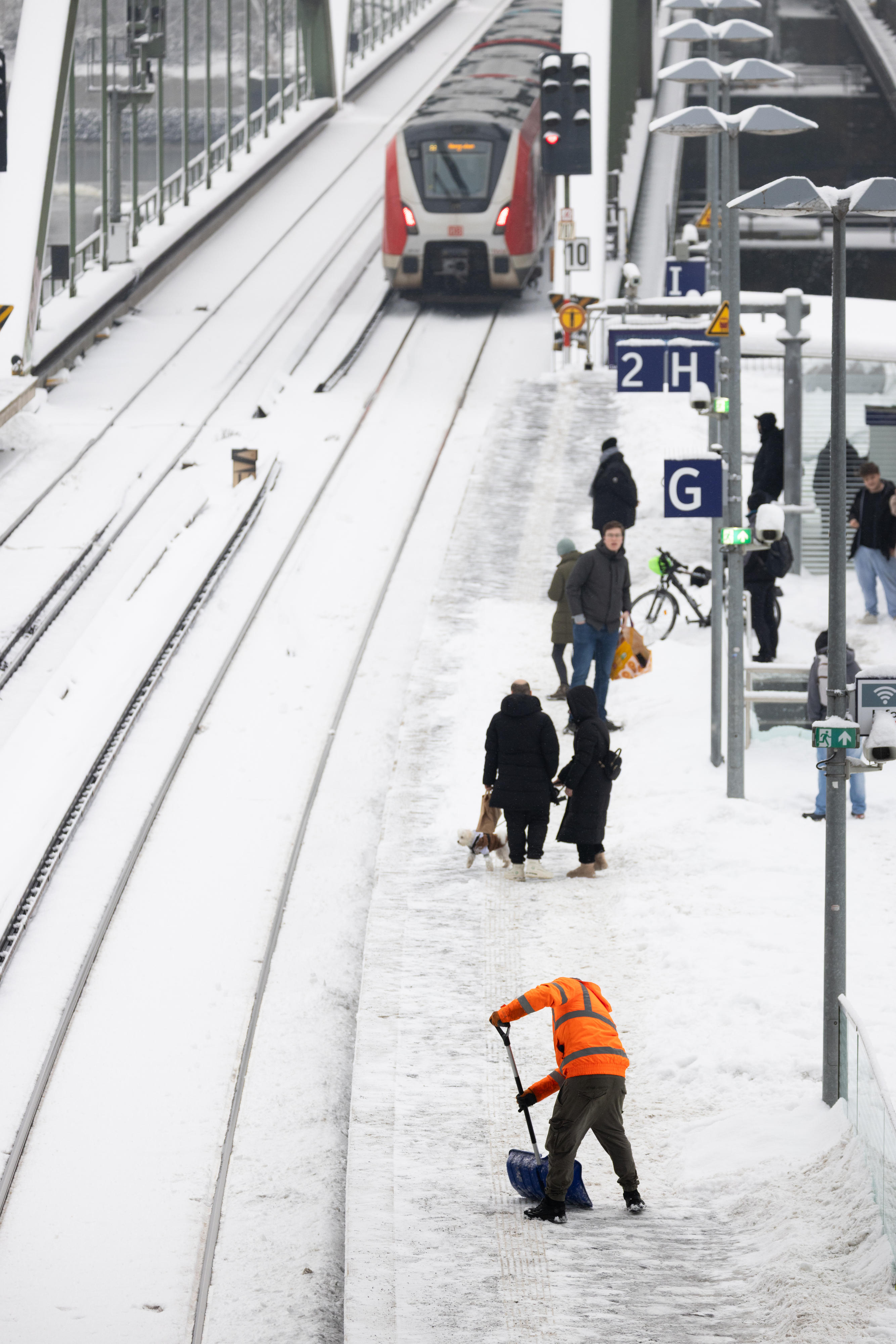 Die DB bedauert die anhaltenden Einschränkungen für die Reisenden. Tausende Kolleg:innen der DB arbeiten ununterbrochen daran, Strecken wieder befahrbar zu machen sowie Bahnsteige und Züge von Schnee und Eis zu befreien.