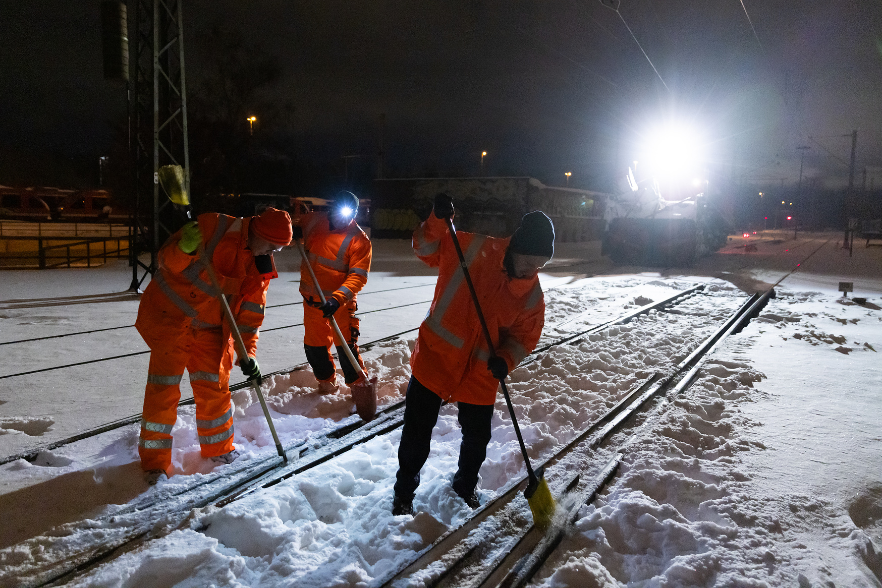 Die Lage war sehr dynamisch. Insbesondere Schneeverwehungen und vereiste Weichen haben uns immer wieder vor neue Herausforderungen gestellt. Und Strecken, die schon frei waren, waren dann erneut nicht passierbar.“
