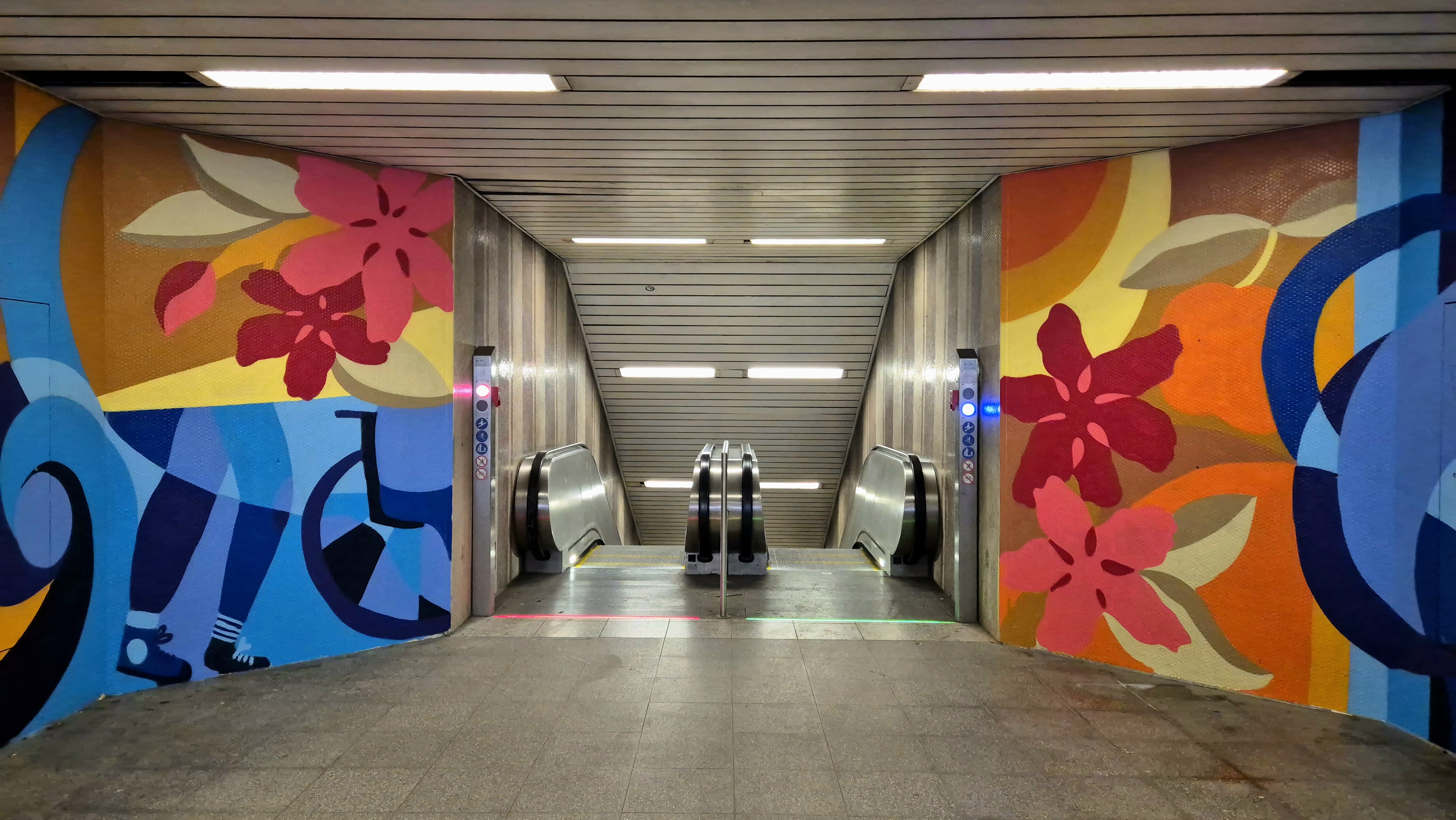 Ein Beispiel ist der Lokalbahnhof Frankfurt. Dort entstand im Februar 2026 im Treppenabgang ein großflächiges Wandbild der Künstlerin Thekra Jaziri. Ihr Kunstwerk bereichert den Bahnhof nicht nur optisch, sondern schafft auch eine offene und einladende Atmosphäre. Das Wandbild zeigt typische Farben und Motive des Rhein-Main-Gebiets wie die Apfelblüte und vereint so Frankfurts regionale Identität mit modernem Design.