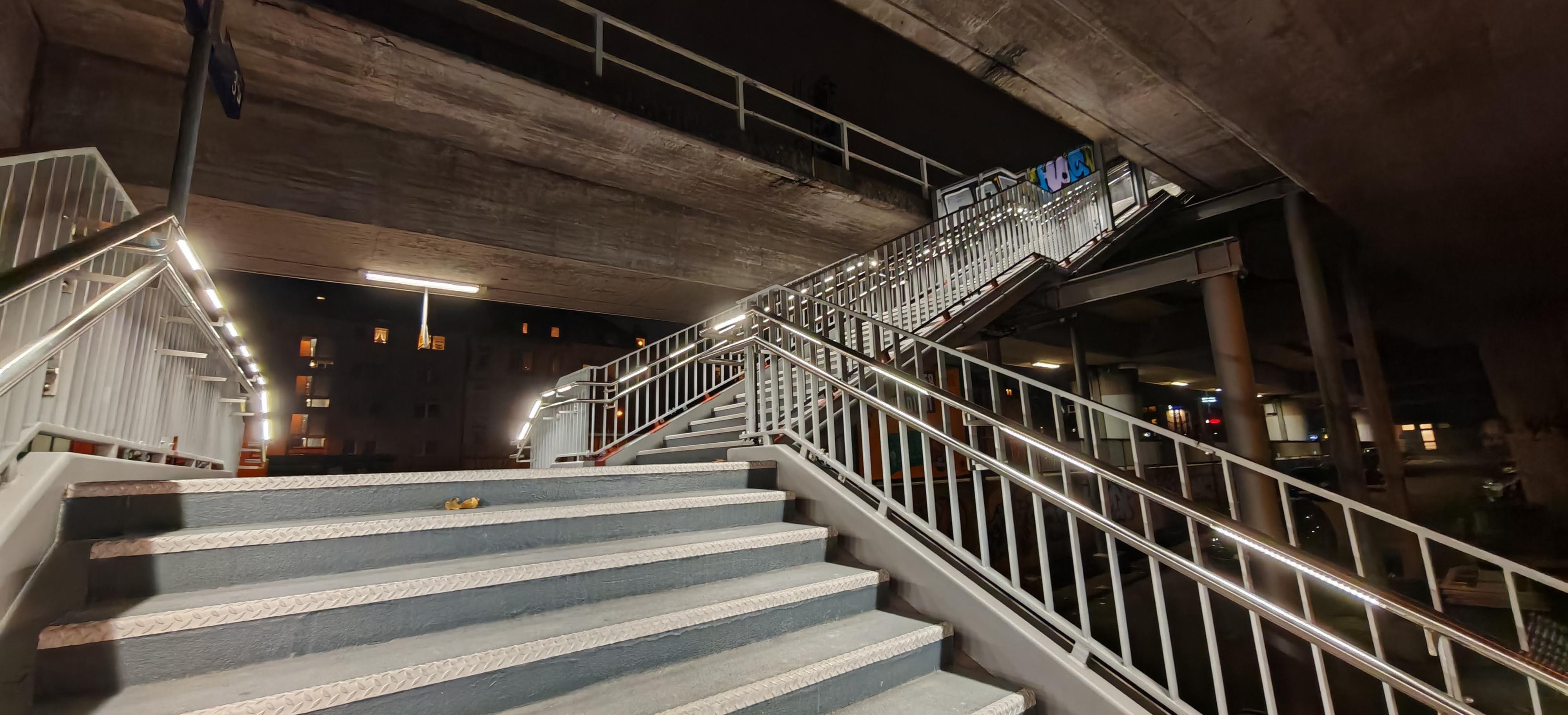 Die Arbeiten am Bahnhof Frankfurt West schreiten voran: Erste vorbereitende Arbeiten, darunter Anpassungen an den Oberleitungs- und Energieanlagen, die Planung der Baulogistik oder Kabelarbeiten sind bereits seit 2023 in der Umsetzung. Mitte 2024 begannen die Bauteams mit den ersten Arbeiten am neuen Treppenaufgang in der Hamburger Allee. Die Treppe dient der verbesserten Erschließung zwischen Hoch- und Hausbahnsteig am Süd-Ost-Kopf sowie der Anbindung zur Hamburger Allee. Diese konnte nun im Dezember 2025 eröffnet werden, sodass unsere Fahrgäste von kürzeren Wegen profitieren.