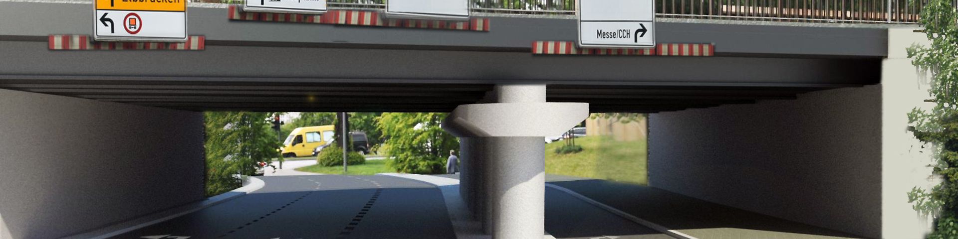 Mit dem Einbau der neuen Brückenteile im S-Bahnbereich ist die Erneuerung der Brücken weitgehendst abgeschlossen. Bis Herbst 2026 stehen noch Restarbeiten aus. Dazu gehören unter anderem die Rückverlegung der Kabel auf die Brücken, der Rückbau der Kabelhilfsbrücke und die Wiederherstellung der Straßen. Die Eisenbahnüberführung „An der Alster“ stammt teilweise noch aus dem Jahr 1901. Die Brücke „Ferdinandstor“ wurde 1962 erbaut.
