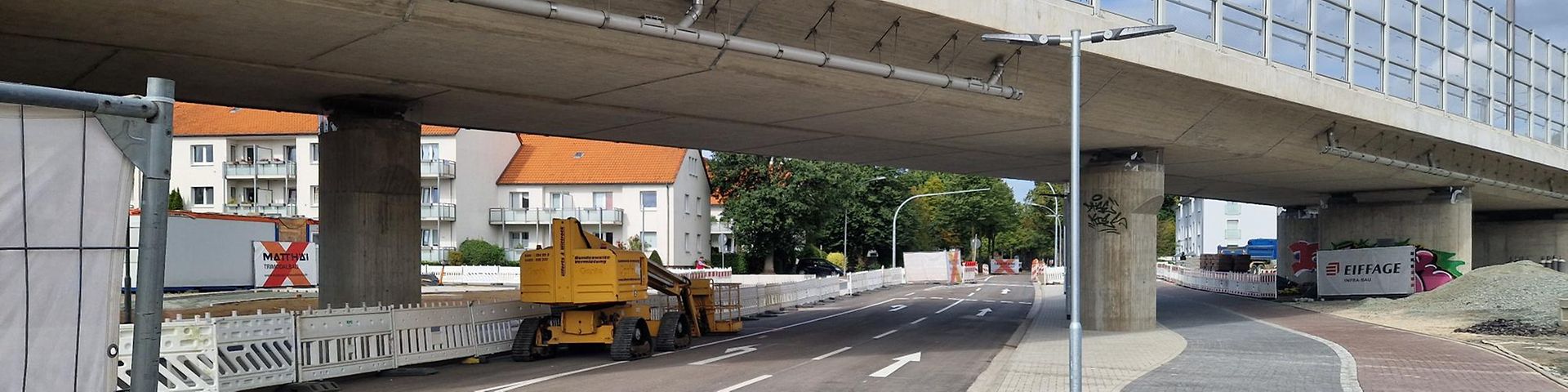 Die DB InfraGO hat die Arbeiten an der Alexanderstraße im Bereich der neuen Eisenbahnbrücke fertiggestellt. Die in rund sechs Monaten erneuerte Fahrbahn trägt zu mehr Sicherheit und Komfort für Verkehrsteilnehmende bei, auch die Durchfahrtshöhe von 4,5 Metern ist nun gewährleistet. Die Alexanderstraße wird morgen um 15 Uhr wieder für den Verkehr freigegeben.