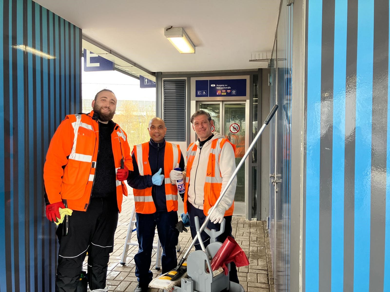 Den Auftakt des Frühjahrsputzes bildeten in den vergangenen Tagen deutschlandweit sieben ausgewählte Bahnhöfe, darunter in Hamburg die S-Bahnstation Stellingen. Dort haben die Kolleg:innen unter anderem Graffiti entfernt, Wandflächen und Scheiben gereinigt, Spinnenweben und Staub entfernt, Bänke und Handläufe gesäubert sowie den Bereich der Fahrradständer von Müll und Rollsplit aus dem Winter befreit.