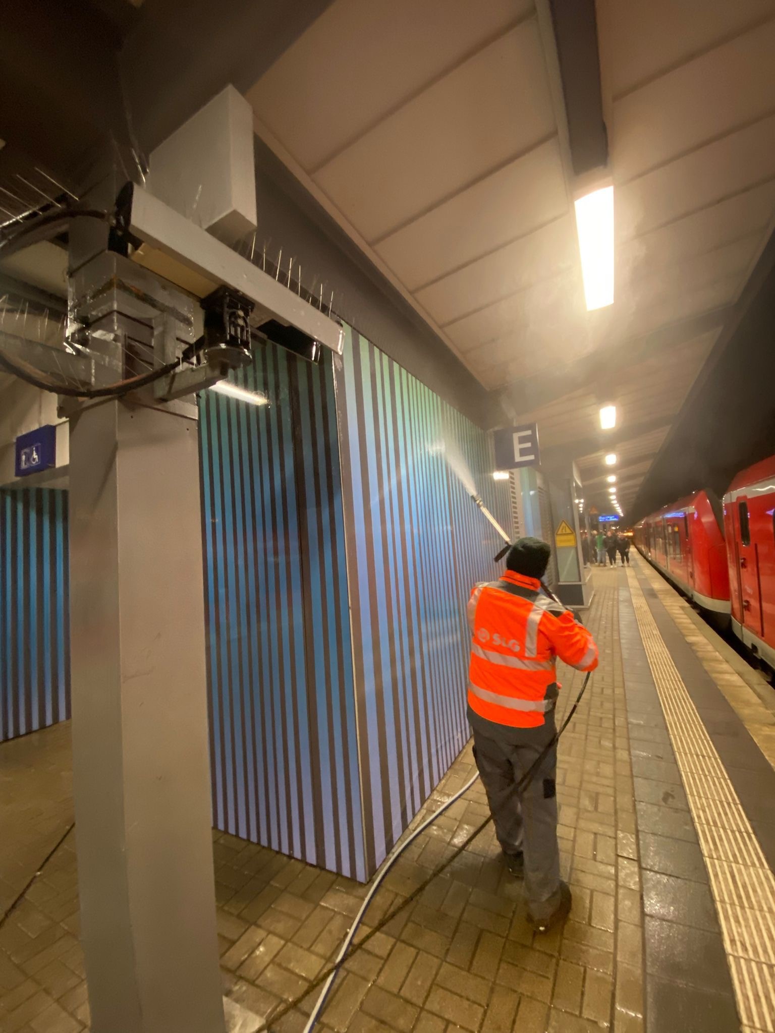Markus Hock, DB Bahnhofsmanagement Hamburg: „Unser Ziel ist es, dass sich unsere Kund:innen an den Bahnhöfen wohler fühlen. Mit einer umfassenden Reinigung, wie hier zum Start des großen Frühjahrsputzes in Stellingen, erleben unsere Fahrgäste schnell spürbare Verbesserungen. Aus Umfragen wissen wir, dass das ganz oben auf der Wunschliste der Reisenden steht.“