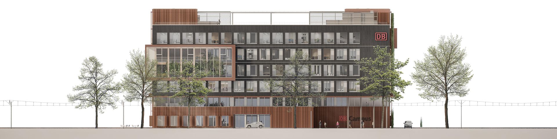 Das 6-geschossige sogenannte „Haus 1“ hat insgesamt rund 10.000 Quadratmeter Nutzfläche. Im 2. bis 5. Obergeschoss werden moderne Büroflächen für Mitarbeitende der DB entstehen. Erdgeschoss und die 1. Etage werden durch den DB Campus genutzt und sind auf bis zu 15.000 Veranstaltungs-Teilnehmende pro Jahr ausgelegt.