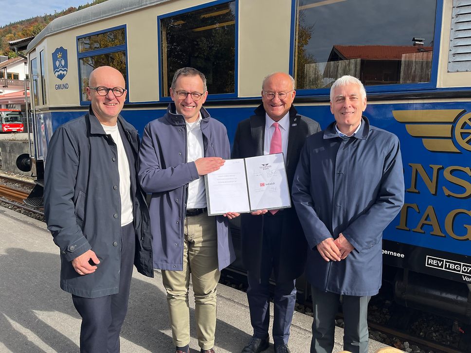 Dr. Michael Bourjau, Geschäftsführer Tegernsee-Bahn Betriebsgesellschaft mbH: „Um die Infrastruktur in Schuss zu halten und an die aktuellen Erfordernisse eines modernen Schienenverkehrs anzupassen, waren für uns und unsere Gesellschafter in den vergangenen Jahren enorme finanzielle Anstrengungen erforderlich. Für die geplante grundlegende Modernisierung und Elektrifizierung der Strecke fehlen uns jedoch die Ressourcen, sowohl personell als auch finanziell. Daraus erwuchs die Idee einer Partnerschaft mit dem bundeseigenen DB-Konzern. Ich freue mich, dass die intensiven Gespräche erfolgreich waren und die Zukunft der Tegernsee-Bahn innerhalb der DB InfraGO AG gesichert ist.“