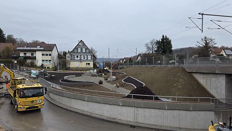 Die Arbeiten an der rund 900 Quadratmeter großen Fläche durch die Toriello GmbH Landschaftspflege aus Nagold laufen seit Mitte September 2025. Nach den Erd- und Pflasterarbeiten erfolgen jetzt die Pflanzungen und Ansaaten. Bis Dezember 2025 soll die Neugestaltung der Grünfläche abgeschlossen sein. Damit die neuen Bäume und Pflanzen anwachsen und sich entwickeln können, bleibt die Grünfläche bis Ende April 2026 gesperrt. Ab Mai 2026 steht sie den Bürger:innen als Ruheoase und Treffpunkt für Feste zur Verfügung. Bis Ende 2028 obliegt die Pflege der Grünanlage der DB, bevor dies wieder in die Verantwortung der Gemeinde übergeht.