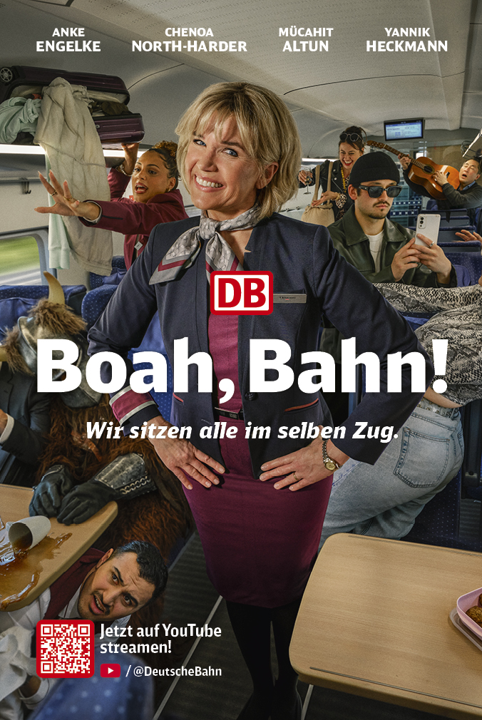 Im Hauptbahnhof in Frankfurt/Main wurde heute die neue Webserie der Deutschen Bahn (DB) „Boah, Bahn! Wir sitzen alle im selben Zug.“ vorgestellt. „Boah, Bahn!” ist die erste fiktionale Webserie von der Deutschen Bahn über die Deutsche Bahn. In kurzen Episoden werden humorvoll und mit einem Augenzwinkern Geschichten aus dem Alltag in den Zügen erzählt. Die neue Webserie geht heute mit den ersten beiden Folgen auf dem DB-YouTube-Kanal online. Morgen, am 9. Oktober werden weitere vier 3-4-minütige Episoden erscheinen. Die Serie wird auch auf dem Instagram- und TikTok-Kanal der DB zu sehen sein.