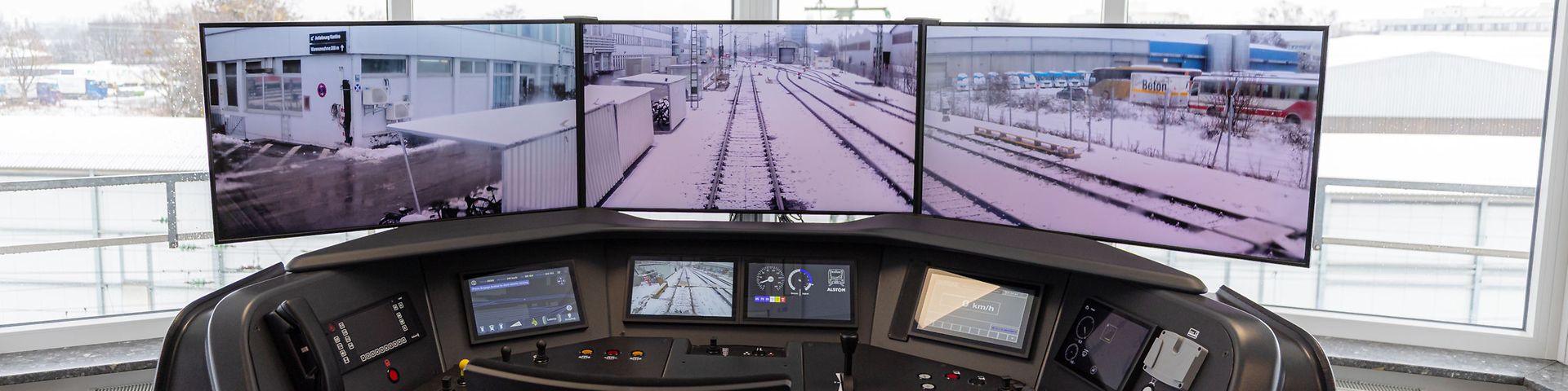 Der Testbetrieb in Steinhausen setzt mit einer umfassenden 5G-basierten Steuerung aus größerer Distanz jetzt aber neue Maßstäbe in Deutschland. Das Fahrzeug lässt sich aus der Ferne nicht nur bewegen, die Mitarbeitenden können auch Türen schließen, die Beleuchtung einschalten oder Warnsignale abgeben. Große Displays zeigen am originalgetreuen Steuerpult Livebilder der Fahrt, während der Zug draußen komplett ferngesteuert fährt. Zusätzlich ist im Rahmen des Testbetriebs eine ortsunabhängige Steuerung per Tablet möglich.